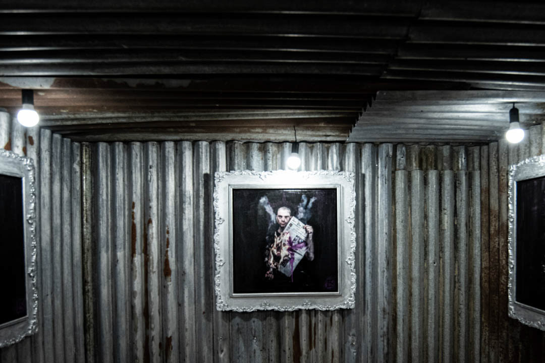 since all the paintings in the (s)aint series are rich in contrast, represent and make clear the conflicting aspects of the country, we also took up the dichotomy between poverty and wealth in this installation